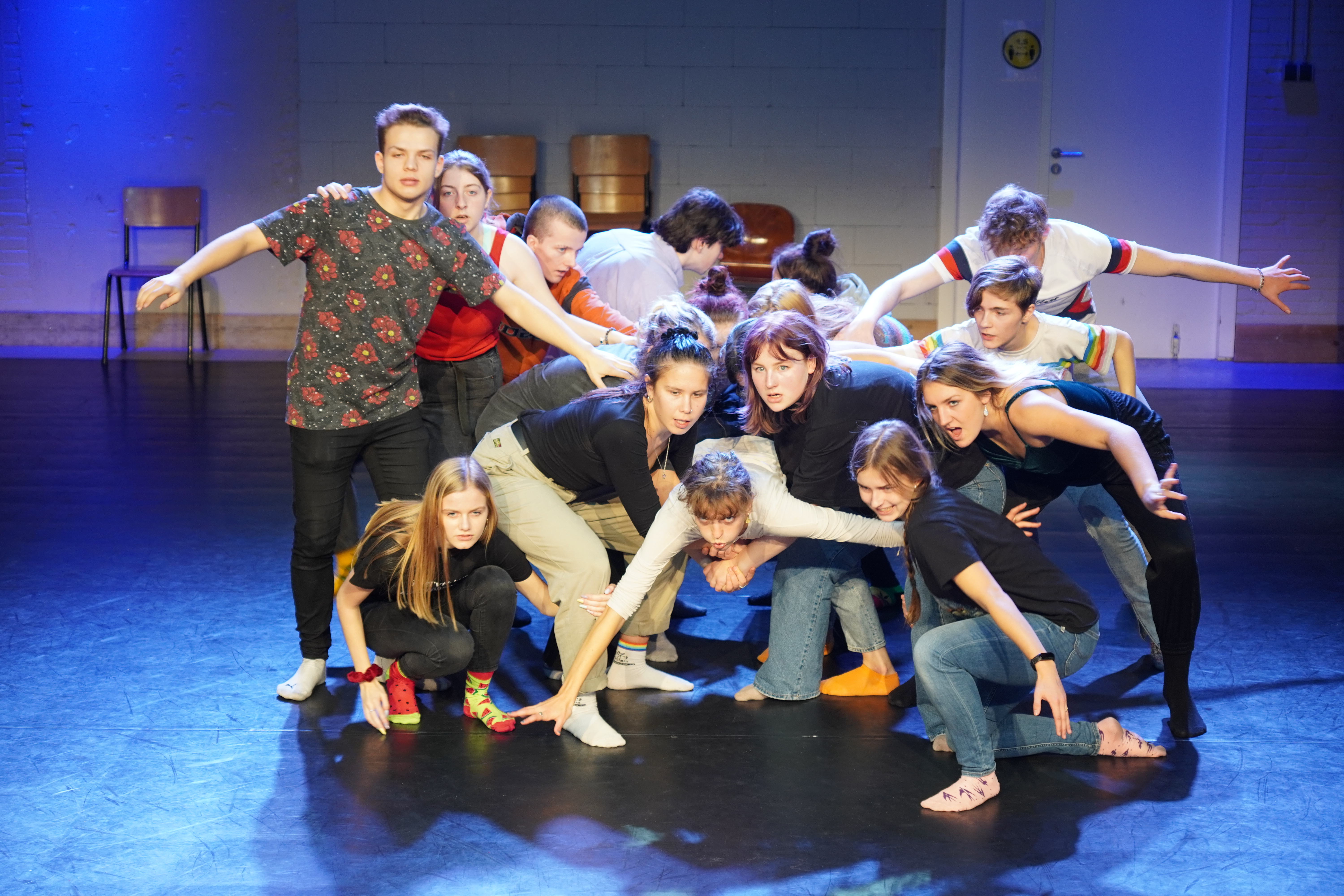 Participants and mentors met in Deventer, Netherlands between November 4 and November 8, 2021, where we were hosted by partner organization Theaterschip. Around 20 participants enjoyed days of workshops in movement and speech, listened to a lecture on artivism and spend most of the time exploring topics that drive them: mental health, education and political system and climate change. On the last day they performed their first #youthmanifesto, spreading their message through performative gestures about the world they wish to live in.