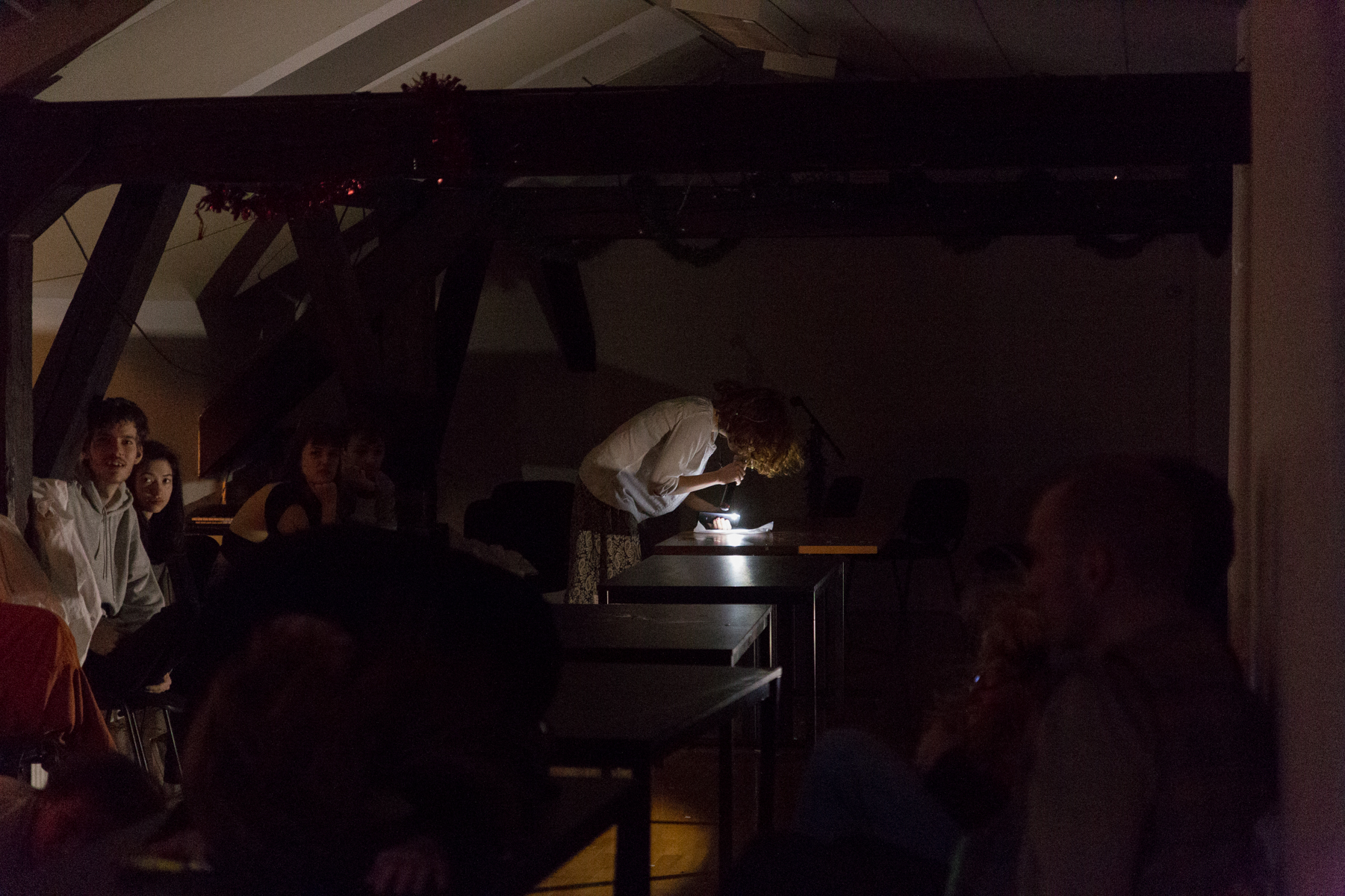 The show is about a white cat, or a white bunny, or an angel; something along the lines of: white+cute+girl. The details are not quite decided yet. Then someone plays the guitar and someone else brings another triangle. While searching for the circumstances to stage a crime play, the protagonist dies prematurely at each attempt. How to stop the repeated murders if they are the basic framework of the story, and how to find out who Lucy is in the first place? Lucy as Lucifer or as an angel as a victim as a woman as a bride... Everyone choose any number, a bottle of wine, somebody take a sip on something, relax open a can of pineapple, marhaba!