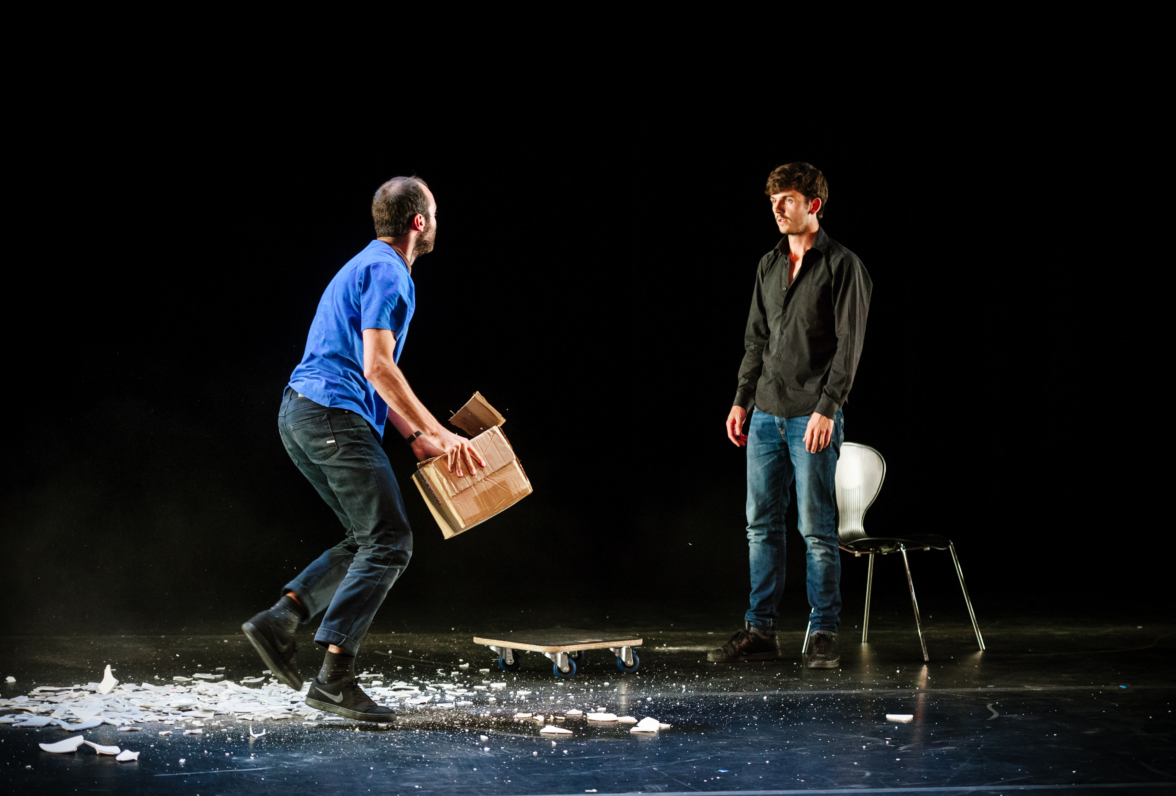 Bertrand Lesca in Nasi Voutsas sta letošnja prejemnika prestižne nagrade Forced Entertainement in ljubljenca festivalskih občinstev po vsem svetu. Njun umetniški izraz je mogoče strniti v preprosto sintagmo politično je osebno in osebno je politično. Vojna v Siriji, globalna ekološka katastrofa, migracije znotraj Trdnjave Evropa. Noben konflikt ni tako velik, da ga ne bi bilo mogoče strniti v boj med dvema performerjema. Bertrand in Nasi se s humorjem lotevata razlik, ljubezni, frustracij, sovraštva in sprave. Pred nami se na odru zrcali vsa paradoksalnost političnih kriz, ki jih živimo, in sproža vprašanje, kako jih lahko premagamo. Veljata za enega najbolj svežih in inovativnih sodobnih performerjev svoje generacije v Evropi, ki na novo izumljata politični teater.