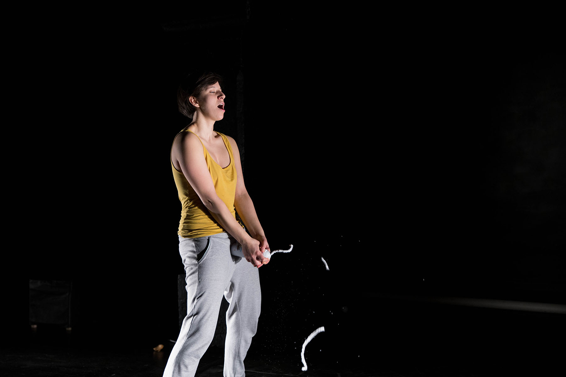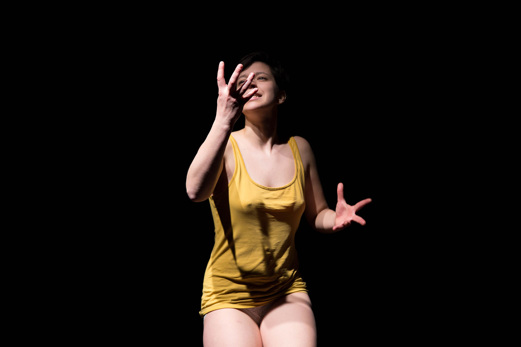 Solo za igralko, ki bi lahko bila, scenografko, ki to se bo, za pripovedovalko, ki skorajda je, pevko, ki to ni, performerko, ki to zivi, za umetnico, ki potrpi in ni ali pa se smeje in je. Solo za Doris.